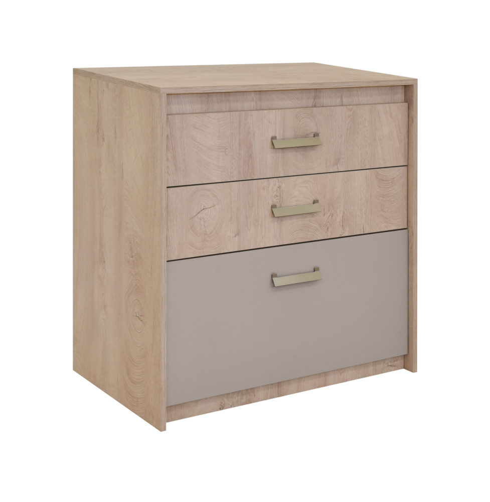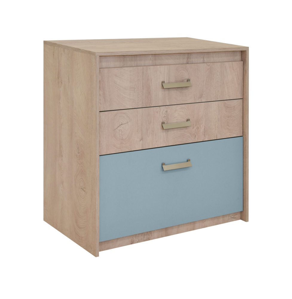 KINDER – Komoda 3F je veliki i prostran element dečije sobe Kinder. Komoda se sastoji od 3 prostrane fioke, izrađena je od oplemenjenog univera debljine 18mm. Duboke fioke se mogu koristiti višenamenski, a sama komoda se može upotrebiti kao mesto za mnogobrojne drage sitnice.