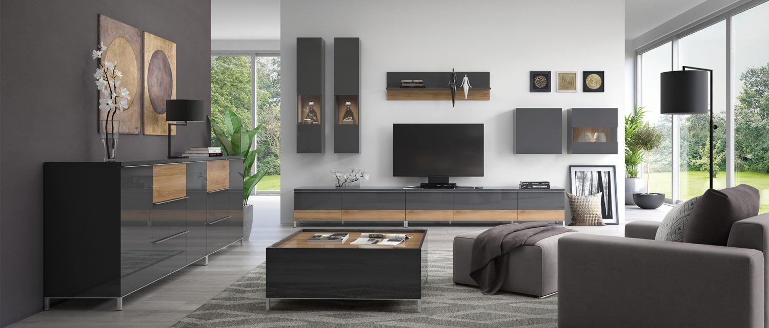 -bočne strane stola i frontovi fioka lakirani UV lakom u visokom sjaju u artaktivnoj Antracit boji
