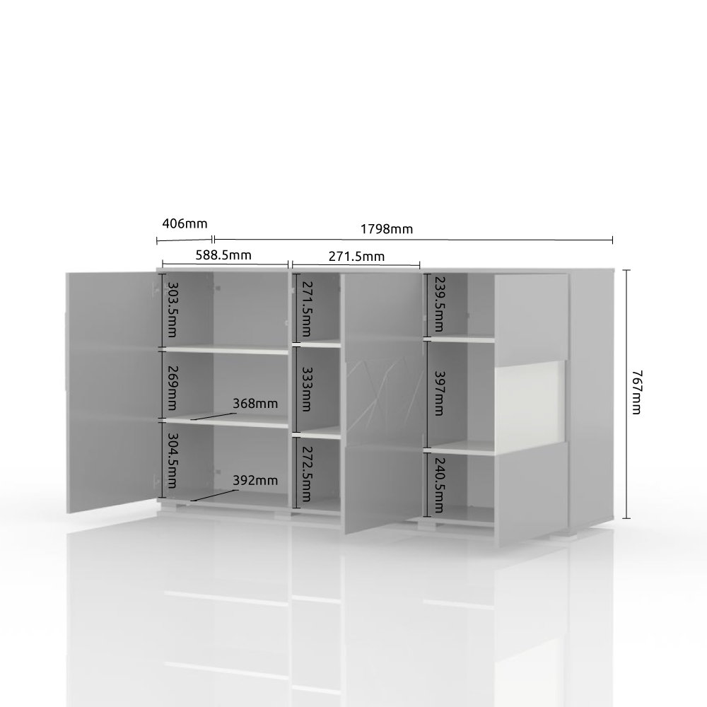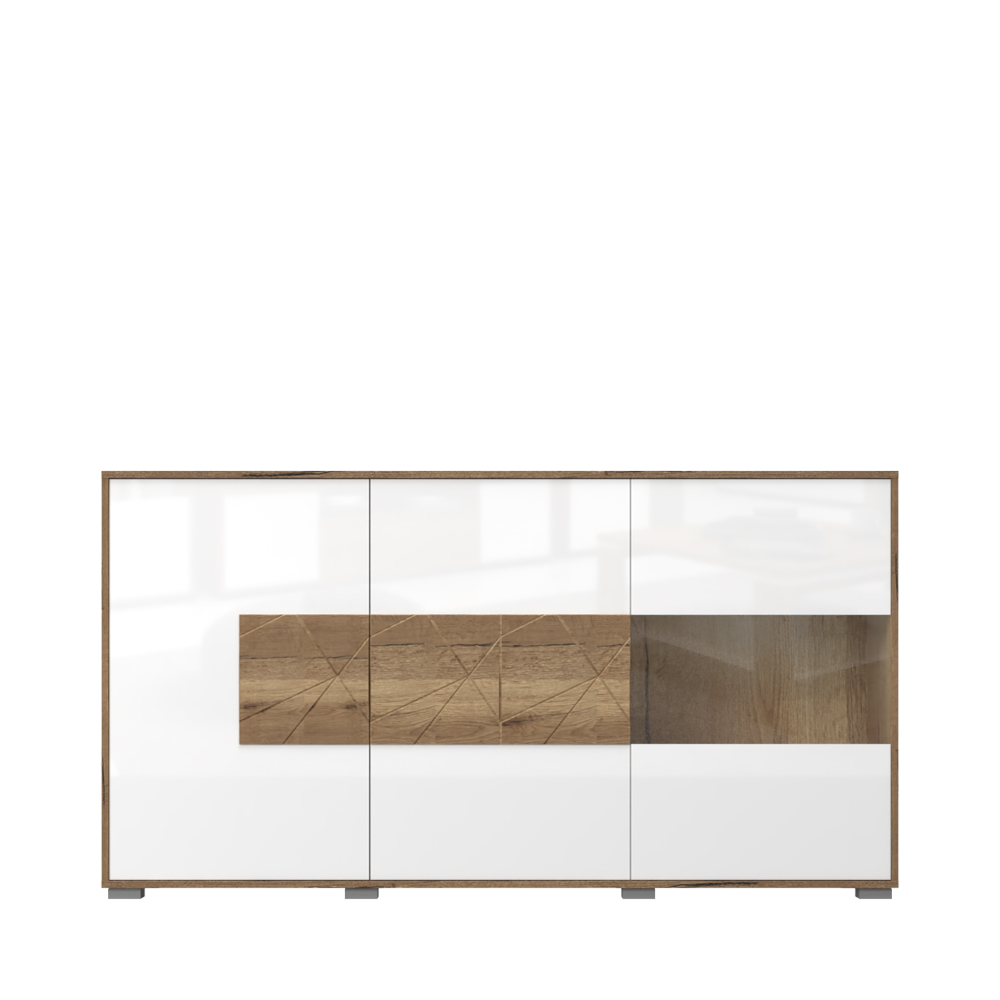 Komoda za dnevnu sobu, iz kolekcije STELA, sa dva puna krila i jednim krilom sa staklom. Ovaj element nameštaja je savremenog dizajna, te će se savršeno uklopiti u moderne dnevne sobe.