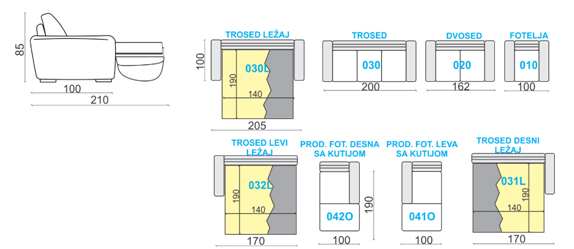 | Jas. naslona | Poliuretanskapenagustine22 kg/m³ + slojakrilnihvlakanagustine 200 gr/m² |
