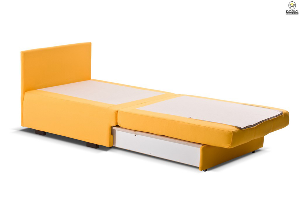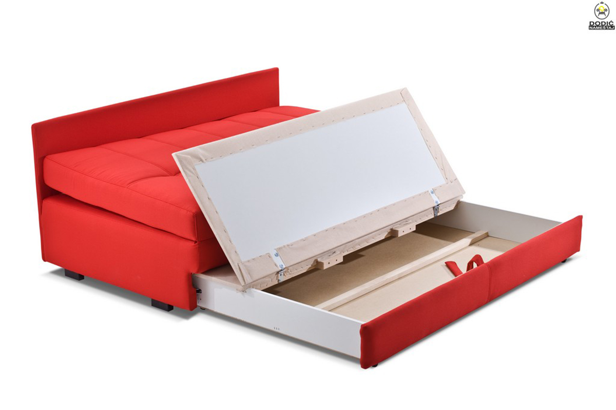 Elementi iz garniture Quatro se razvlače u ležaj i poseduju kutiju za odlaganje posteljine.