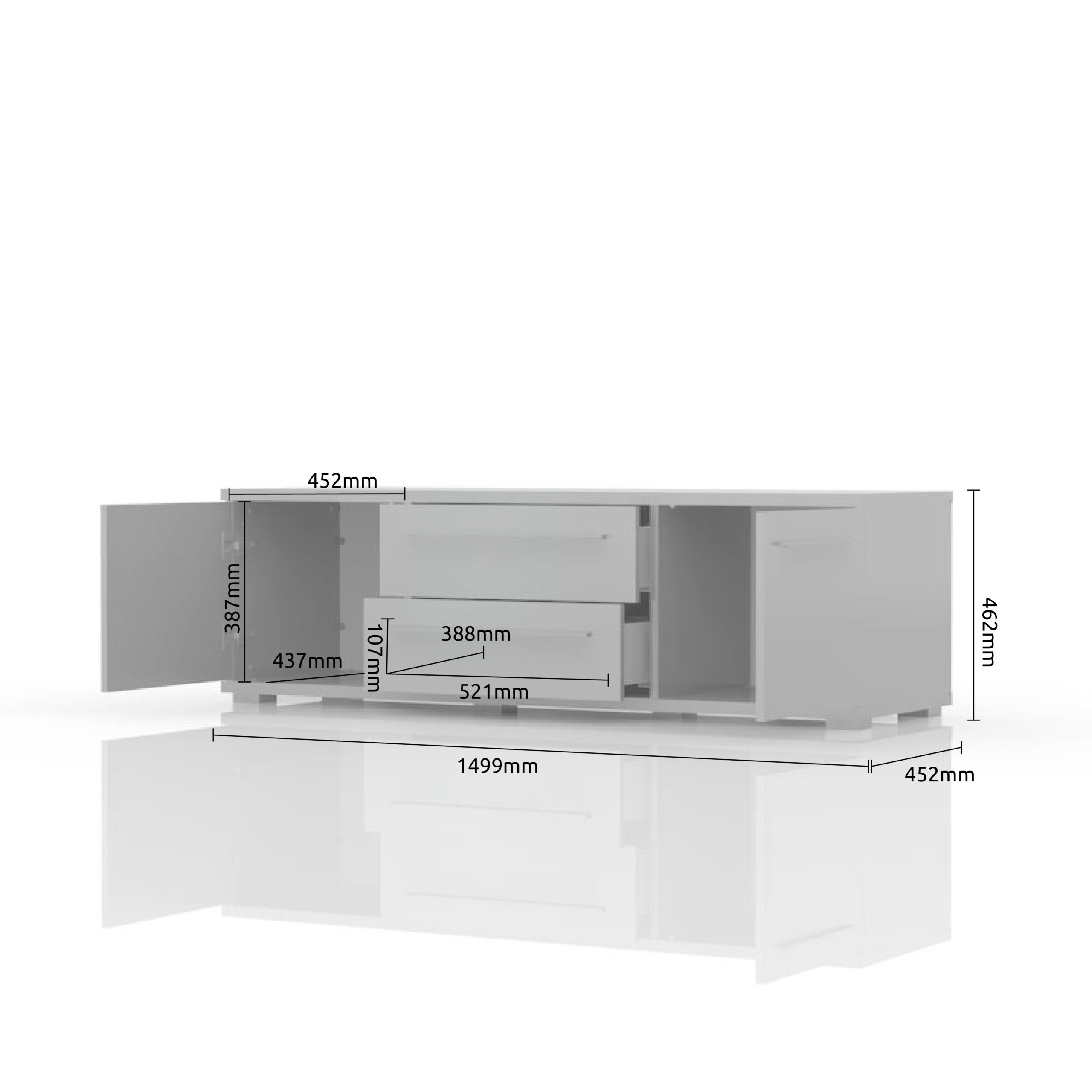 Tv sto za dnevnu sobu iz kolekcije nameštaja PIANO sa dva krila (45cm) i dve fioke (60cm), kompletno lakiran najnovijom tehnologijom UV lakiranja
