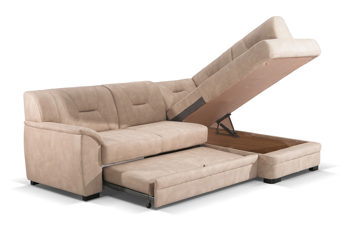 Manjih dimenzija sa naslonom i na kraćem delu, velikim boksom za posteljinu kao i jednostavim mehanizmom za spavanje, ugaona garnitura Nevada je jedinstvena i pravi izbor za Vas.