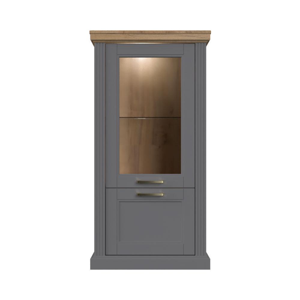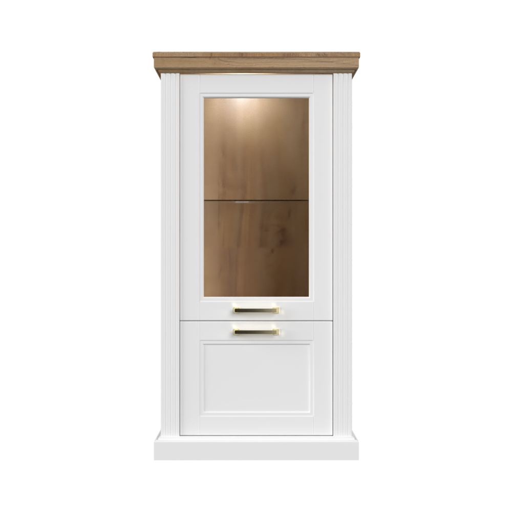Luksuzna vitrina iz kolekcije TARA sa jednim staklenim i jednim punim krilom.