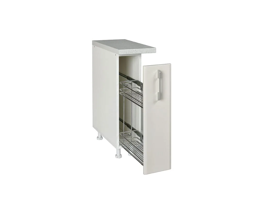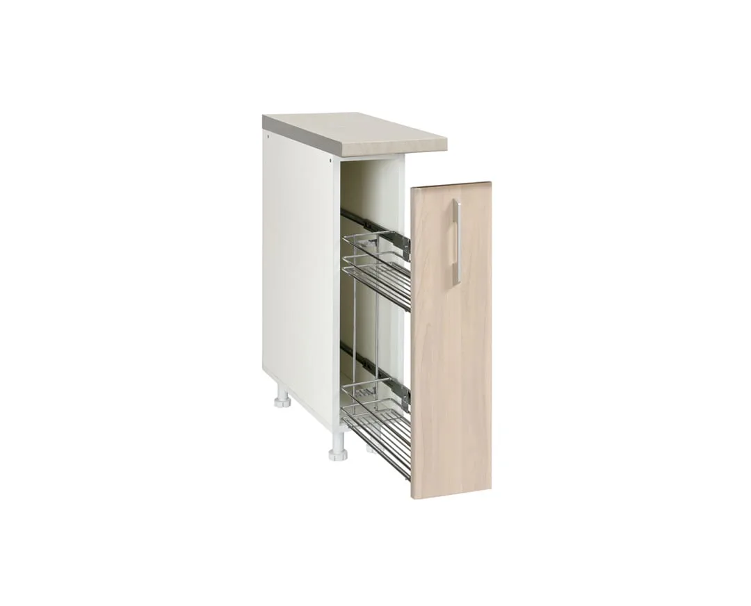 IN MDF D 20 je donji kuhinjski element koji zauzima veoma malo prostora, a poseduje izuzetnu upotrebnu vrednost. U pitanju je komad nameštaja izrađen od kvalitetnog medijapana, sa izuzetnom hromiranom konstrukcijom, koji dolazi u velikom broju dezena i nezaobilazan je element u svakoj savremenoj kuhinji. Može se koristiti kao bife za piće, ili za skladištenje velikog broja flaša i tegli. **NAPOMENA** Svi elementi iz programa Kuhinja IN MDF projektovani su tako da se mogu kombinovati u postavkama kuhinja sa bilo kojim drugim elementom Kuhinja IN MDF.