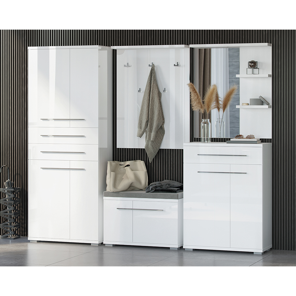 Cipelarnik za predsoblje iz kolekcije PIANO sa dva asimetrična krila i fiokom, modernog dizajna i elegantne forme.