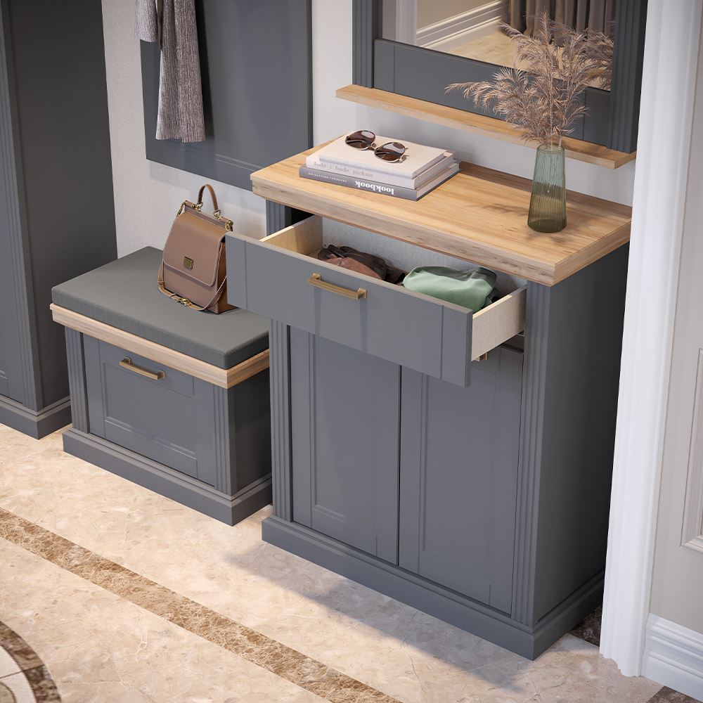 Cipelarnik za predsoblje iz kolekcije TARA, sa dva krila i jednom fiokom.