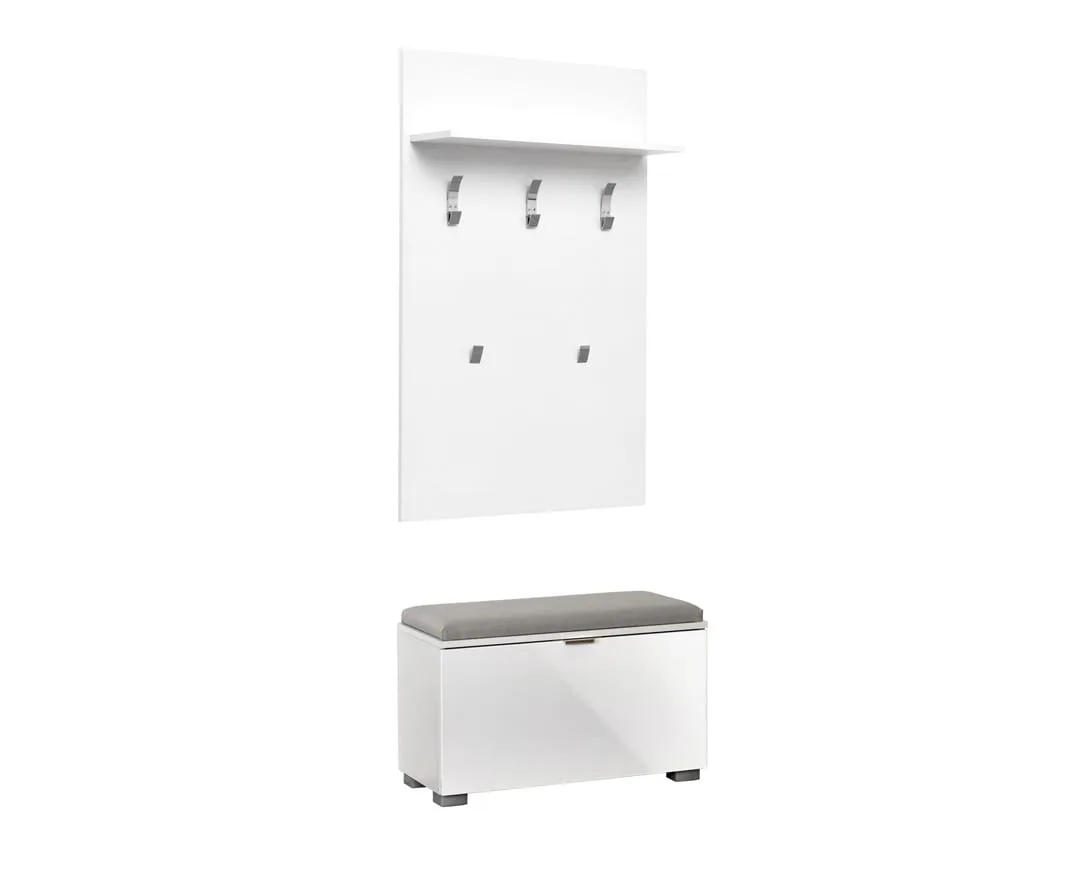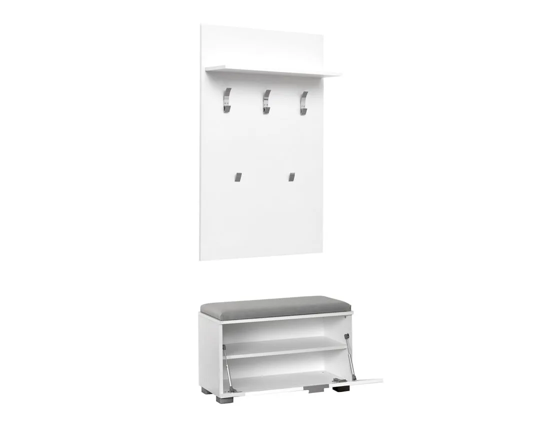 Predsoblja ELEGANCE LINE KOMODA SA ČIVILUKOM 80, izrađen od univera 18mm. Predstavlja idealno rešenje za Vaše predsoblje. Gornji deo predviđen je za odlaganje odeće, a donji deo je komoda sa prostranim prostorom podeljenim policom. Predsoblje ELEGANCE LINE KOMODA SA ČIVILUKOM 80 možete pored kućne upotrebe koristiti i u kancelariji. Element ima tapacirani deo za sedenje prilikom obuvanja.