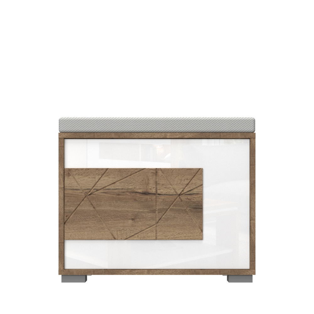 Komoda za predsoblje iz kolekcije STELA sa jednim krilom i tapaciranim jastukom za sedenje debljine 5 cm.