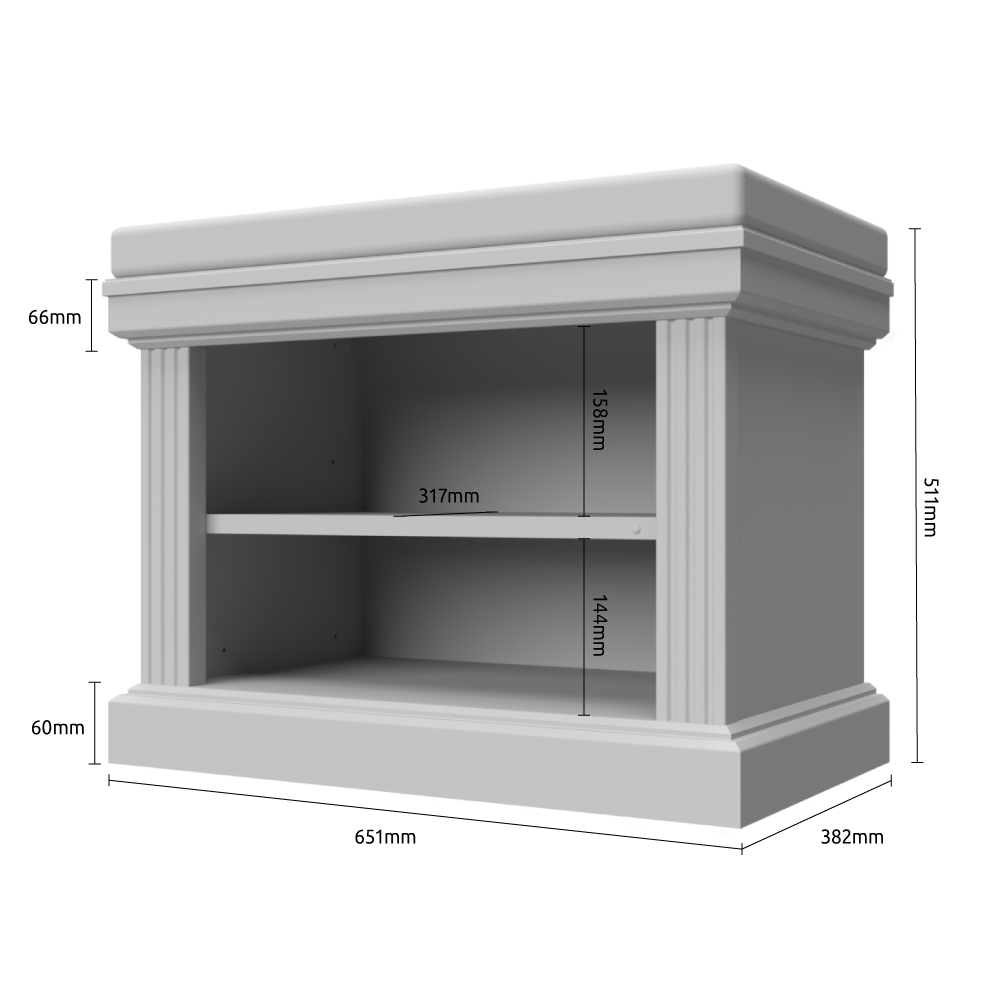 -front komode je od rezbarenog medijapana lakiranog UV lakom sa soft mat efektom u grafit boji, a dekorativna masivna pokrivna ploča od medijapana presvučena folijom u dekoru Pacifik orah