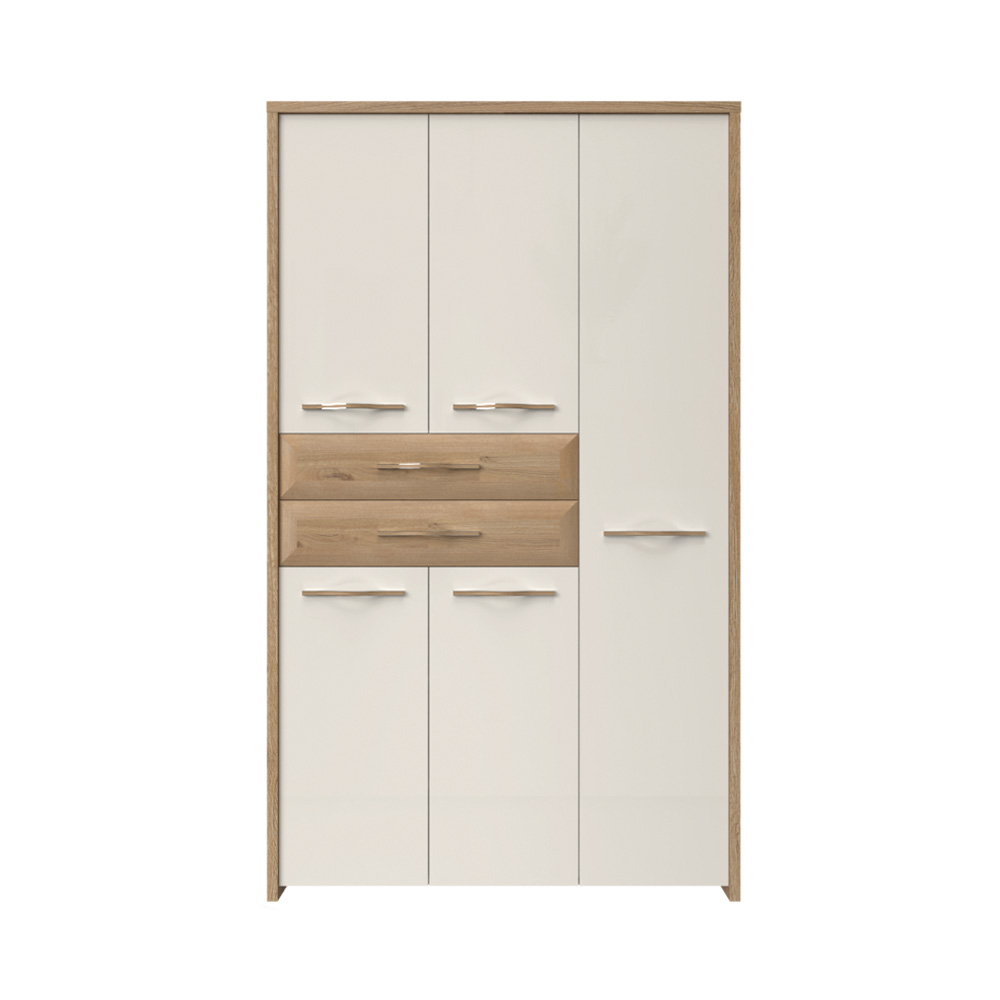 Vitrina za predsoblje iz kolekcije GALA sa pet krila i dve fioke, modernog dizajna i jake geometrijske forme.