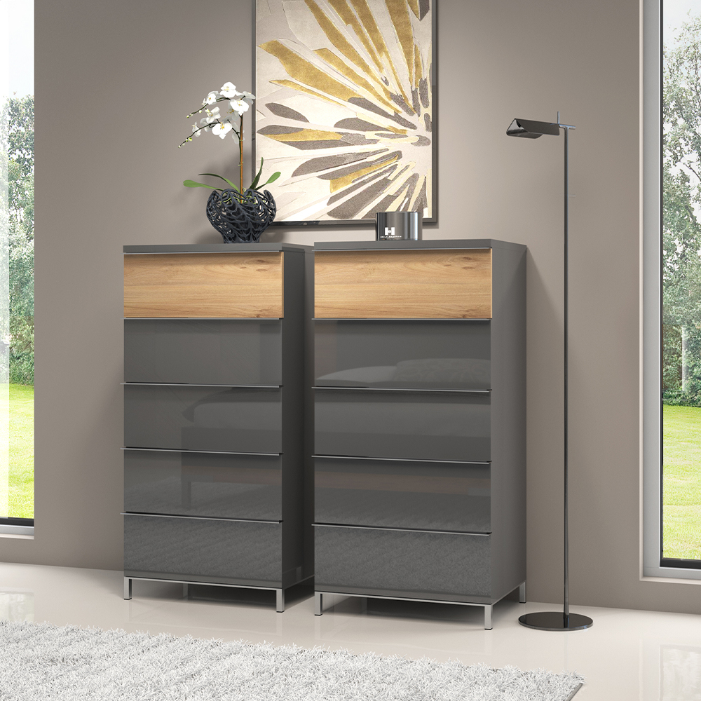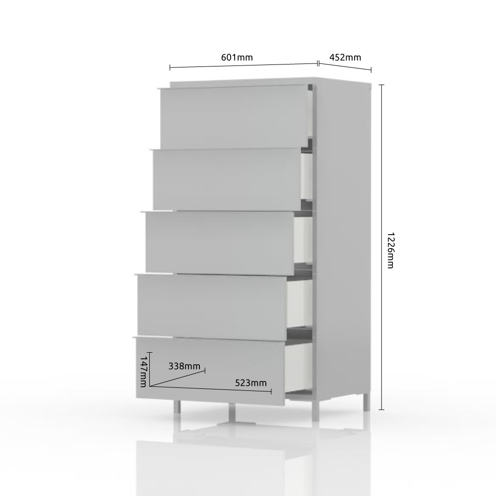 Fiokar sa pet prostranih fioka, modernog dizajna i minimalističke forme.