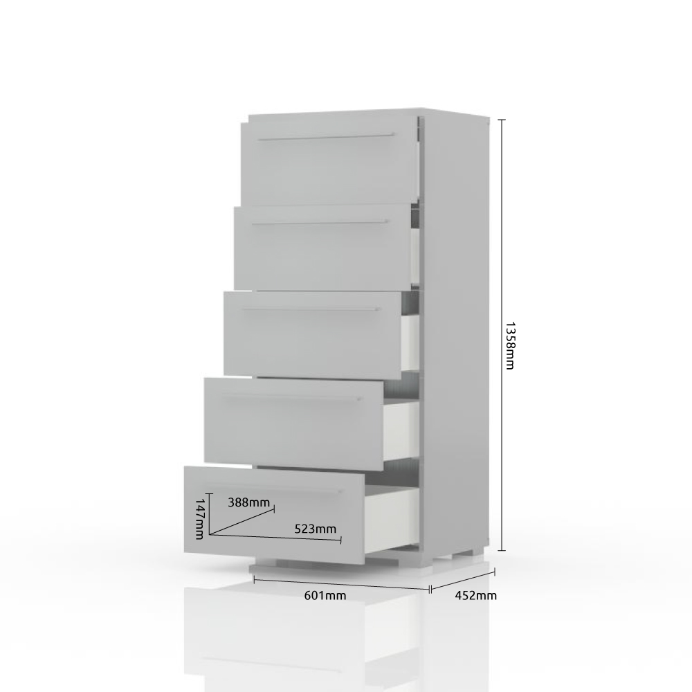 Fiokar sa pet prostranih fioka, dizajnirane geometrijske forme iz kolekcije nameštaja PIANO.