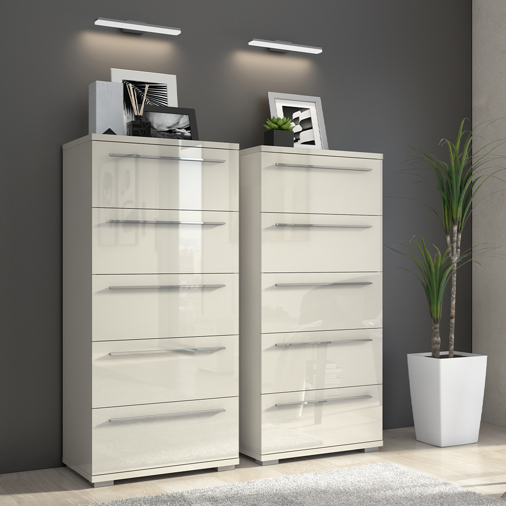 -frontovi, bočne strane i plafon elementa lakirani su UV lakom u visokom sjaju, u toploj bež boji