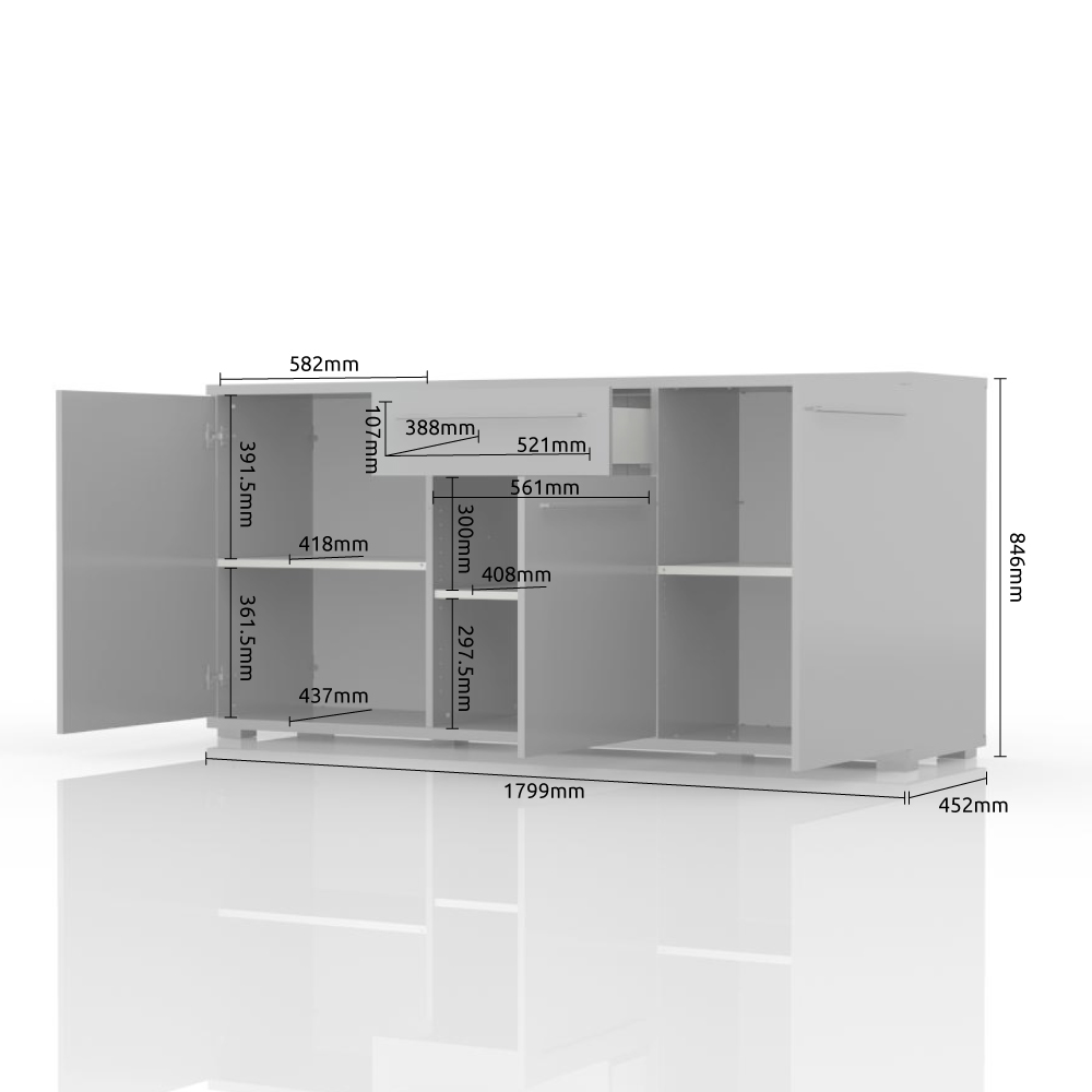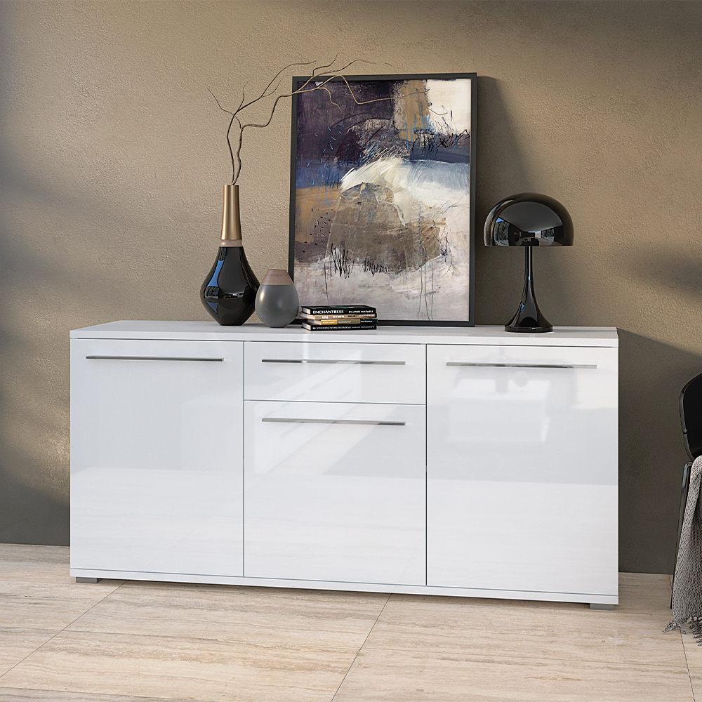 Funkcionalna komoda iz kolekcije nameštaja PIANO sa tri puna krila I jednom fiokom, dizajnirane geometrijske forme.