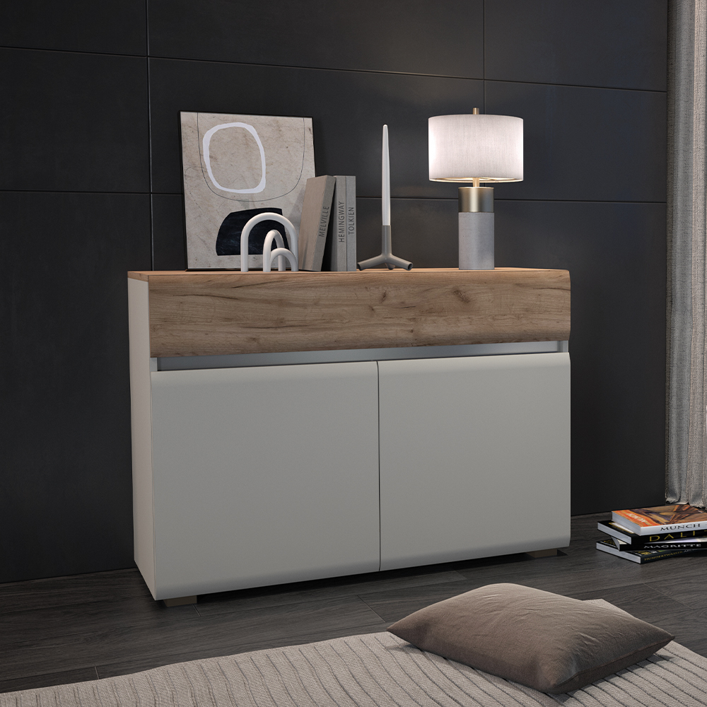 Komoda za spavaću sobu iz luksuzne kolekcije INVICTUS sa dva krila i jednom fiokom, skladne i meke forme frontova. Sofisticiran komad nameštaja za vašu spavaću sobu.