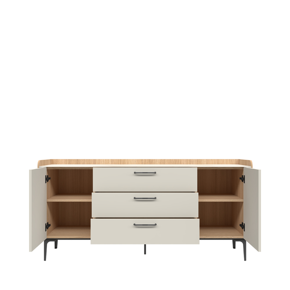 Komoda iz kolekcije AIR sa dva krila i tri fioke, skladne i meke forme frontova.