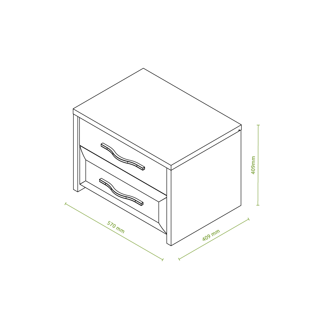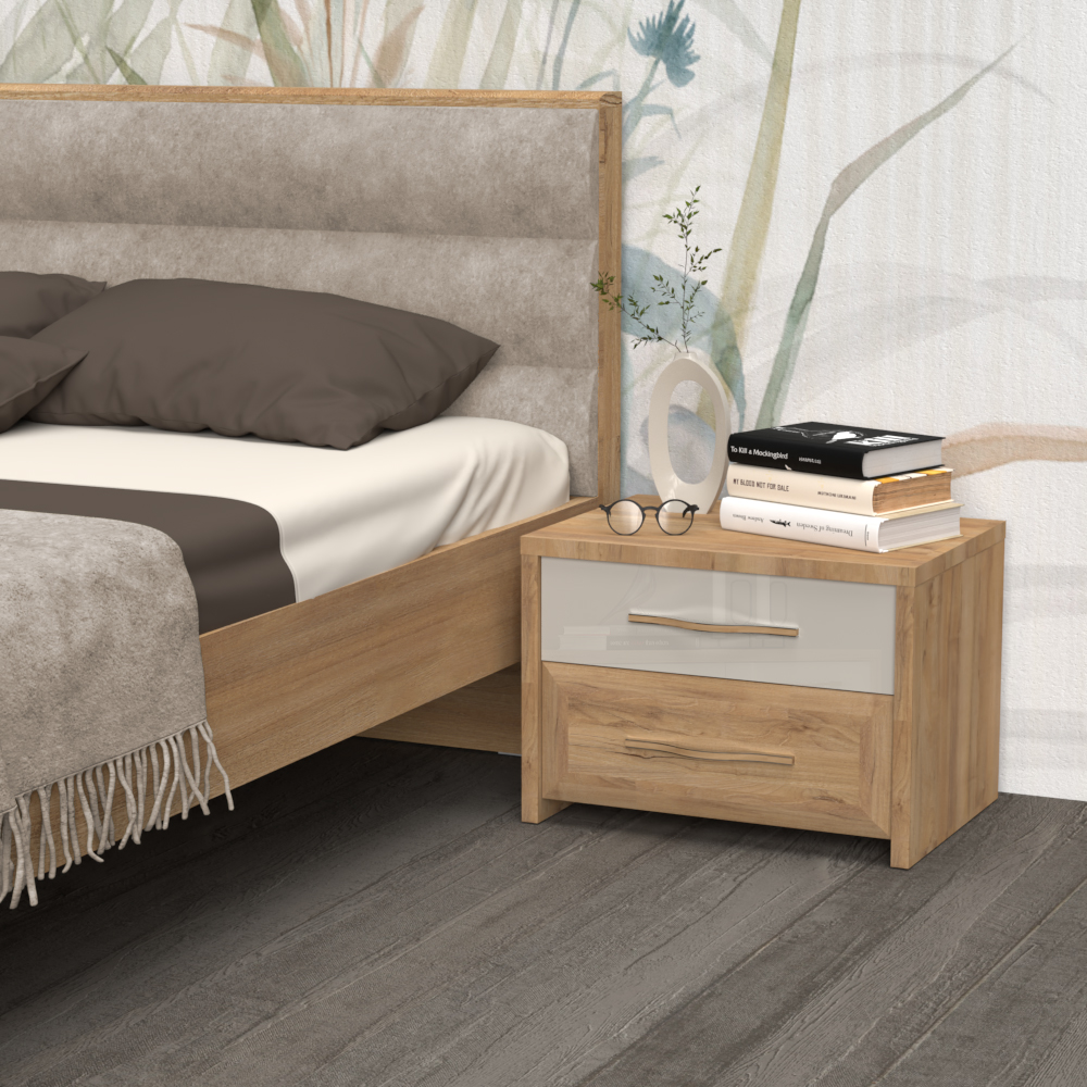 Noćni stočić za spavaću sobu, iz kolekcije GALA, modernog dizajna, sa dve fioke.