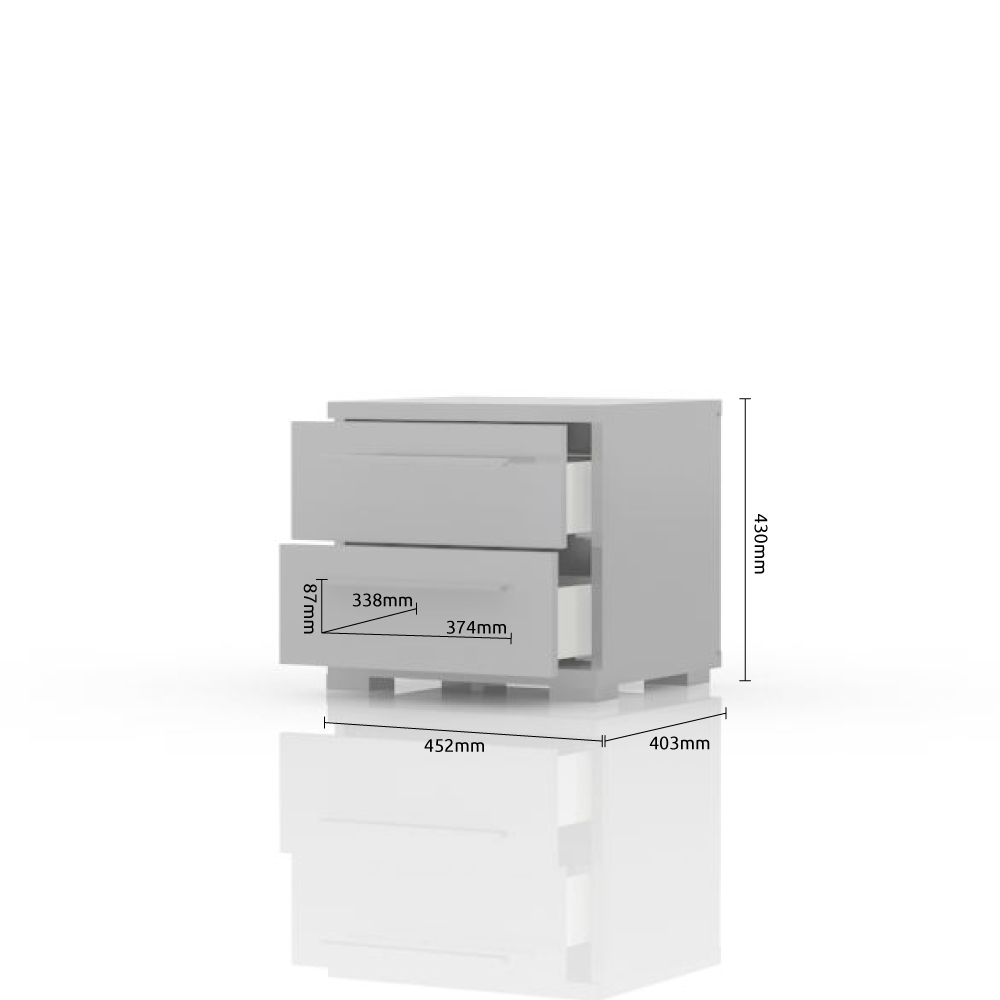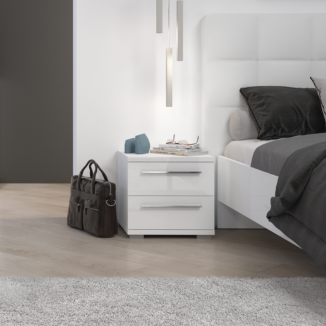 Noćni stočić sa dve fioke, dizajnirane geometrijske forme iz kolekcije nameštaja PIANO.