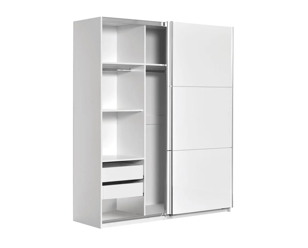 Sa elegantim vratima u kombinaciji sa ili bez ogledala i sa hettich klizni mehanizom, Elegance line američki plakar 180 je dobar izbor. U levom delu plakara se nalaze police i dve fioke, dok je u desnom delu šipka za ofingere.