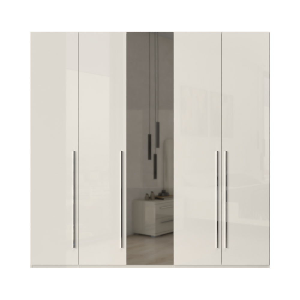 Funkcionalni plakar sa pet krila i jednim ogledalom, sa dekorativnom bočnom i pokrivnom lajsnom sa rasvetom iz kolekcije nameštaja PIANO.