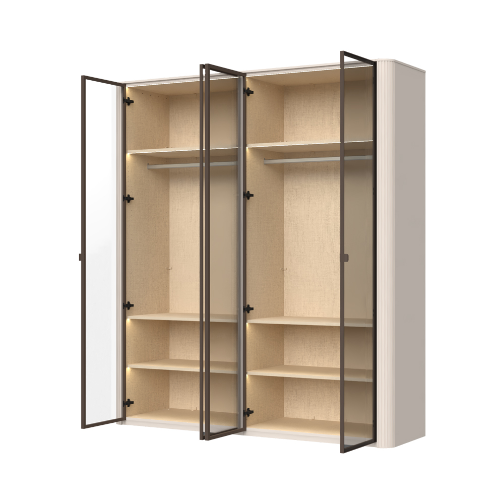 Funkcionalni plakar sa staklenim frontovima sa aluminijumskim ramom u dekoru Midnight Copper iz kolekcije Rondo.