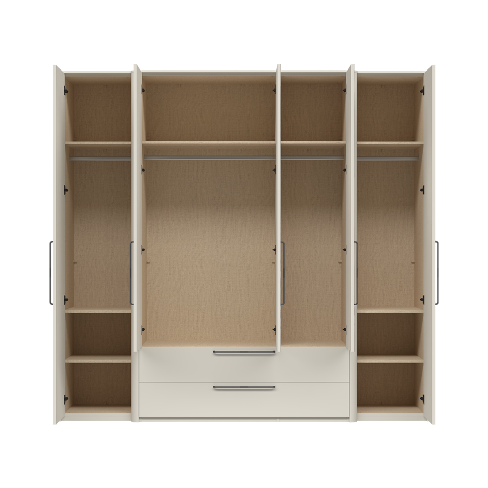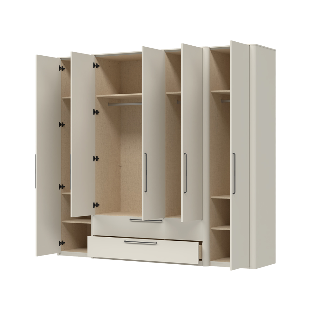 Plakar za spavaću sobu iz kolekcije AIR sa pet krila i dve fioke skladne i meke forme.