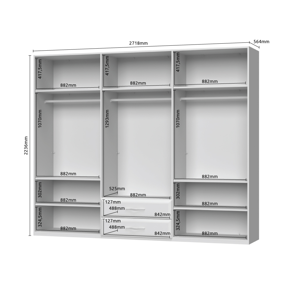 -plakar sadrži sedam većih fahova kao i tri veće garderobne šipke