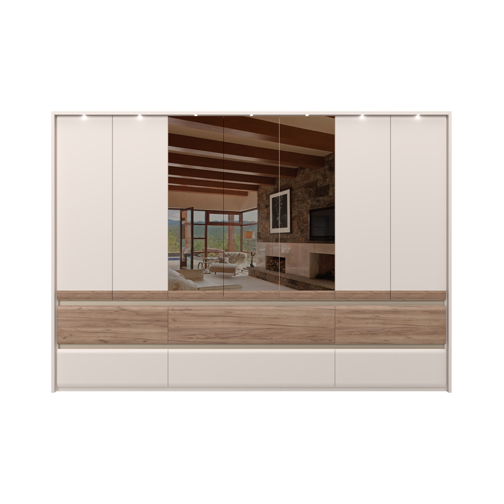 -krila elementa u boji kašmir sa ogledalom i aplikacijom od profilisanog medijapana u drvo-dekoru Tobacco hrast
