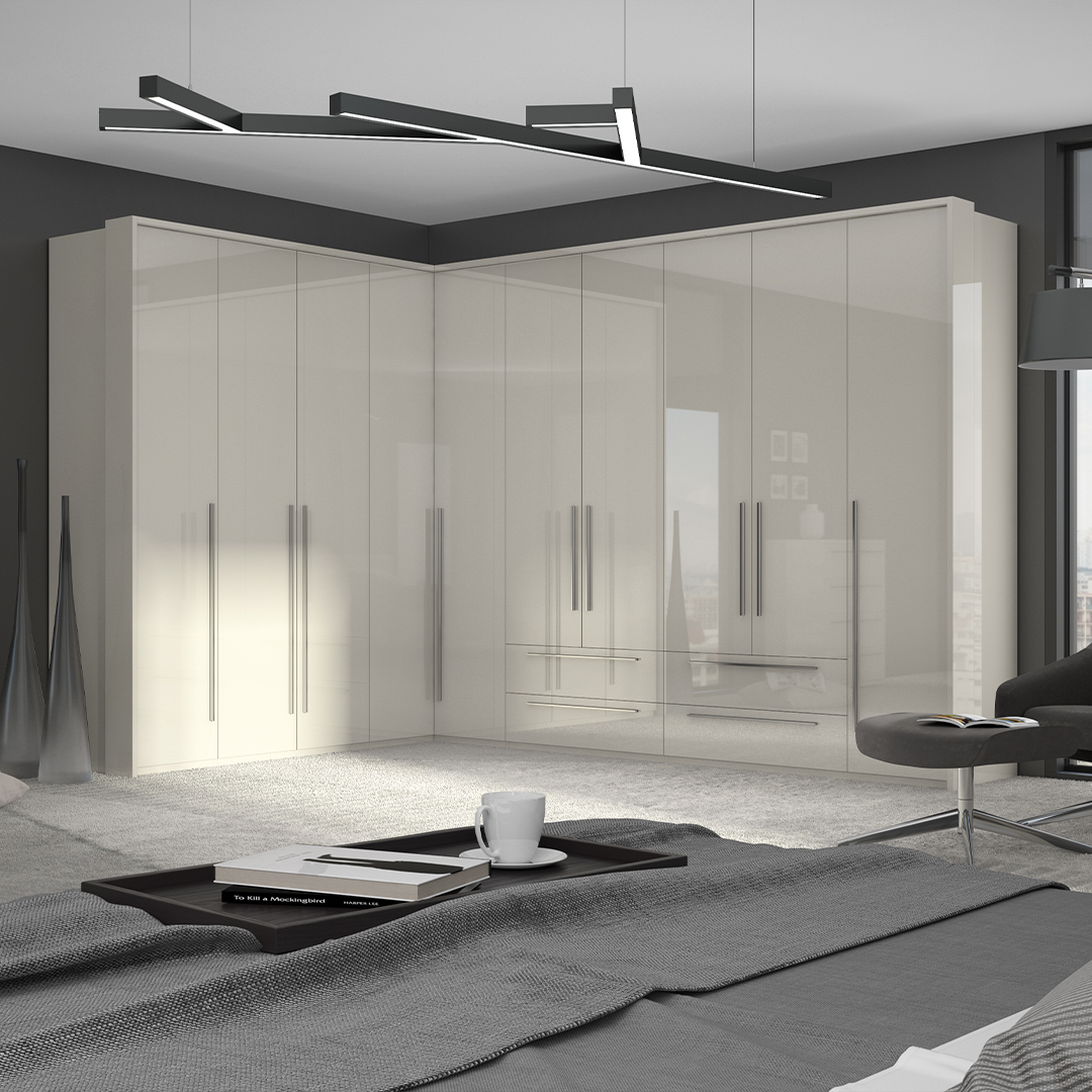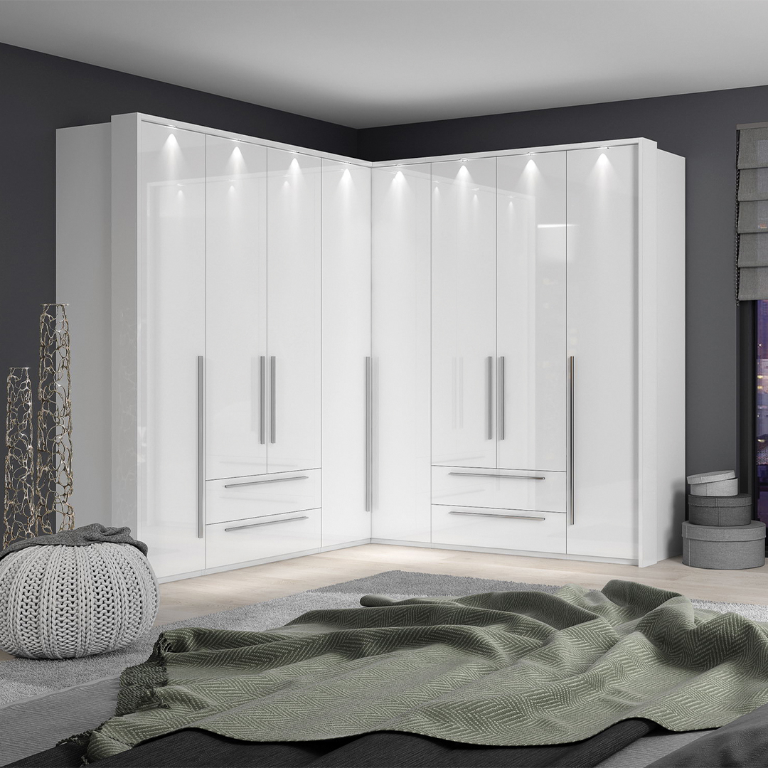 Funkcionalan ugaoni dvokrilni plakar dizajnirane geometrijske forme.